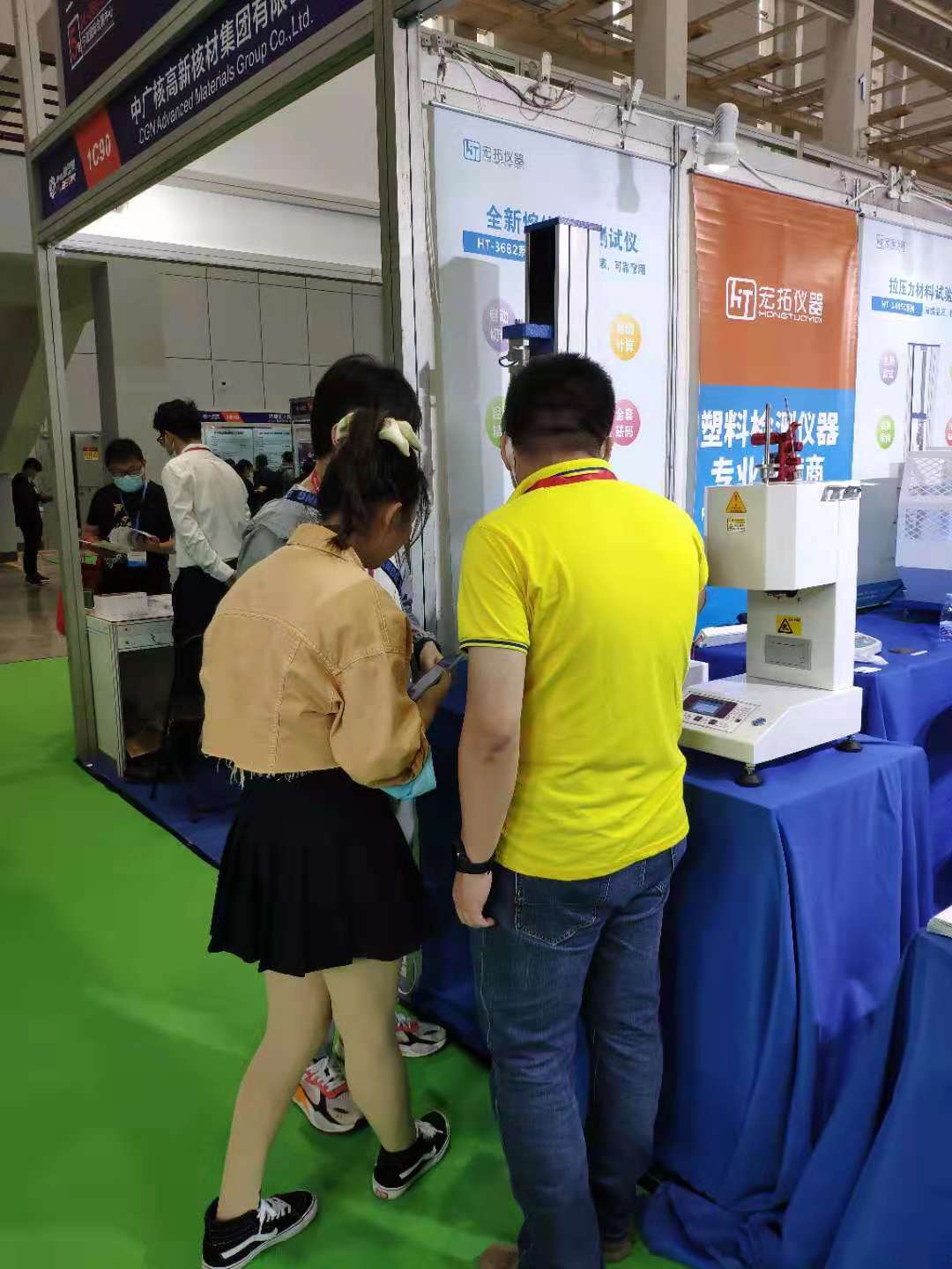 現場技術人員給觀眾展示了我們的塑料檢測儀器,密度計,拉力試驗機,維卡熱變形,沖擊試驗機,深受客戶好評!希望明年的